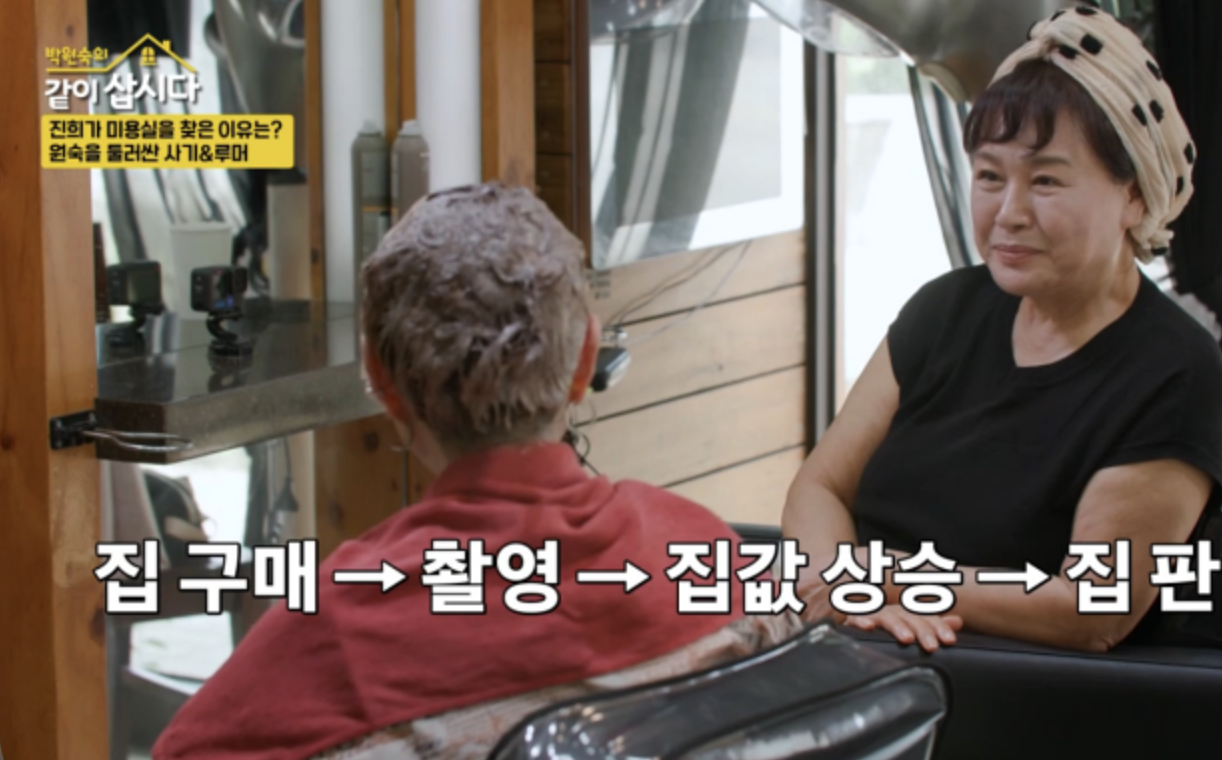 함께 출연한 홍진희가 “스위스 편 방송 나갈 때 이웃 주민이 ‘박원숙이 집 장사한다’고 하더라”는 이야기를 전하자,