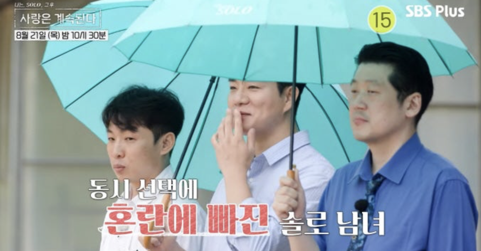 한편, '솔로민박'에서는 '나솔사계' 최초의 '동시 선택' 데이트가 진행됩니다. 제작진의 '동시 선택' 고지에 미스터들은 어리둥절해 하면서 "왓?", "뭐지?"라는 반응을 보였는데요. 저는 이 '동시 선택'이라는 새로운 포맷이 '나솔사계'에 어떤 '대격변'을 가져올지 기대가 됐습니다. 직후, 솔로녀들은 빗방울이 떨어지는 해변에 일렬로 서 있고, 미스터들은 차례로 선택에 돌입합니다. 이번 '동시 선택'에서 어떤 남녀가 울고 웃을지, '솔로민박'을 아수라장으로 만든 새로운 데이트 매칭 결과가 궁금해집니다.