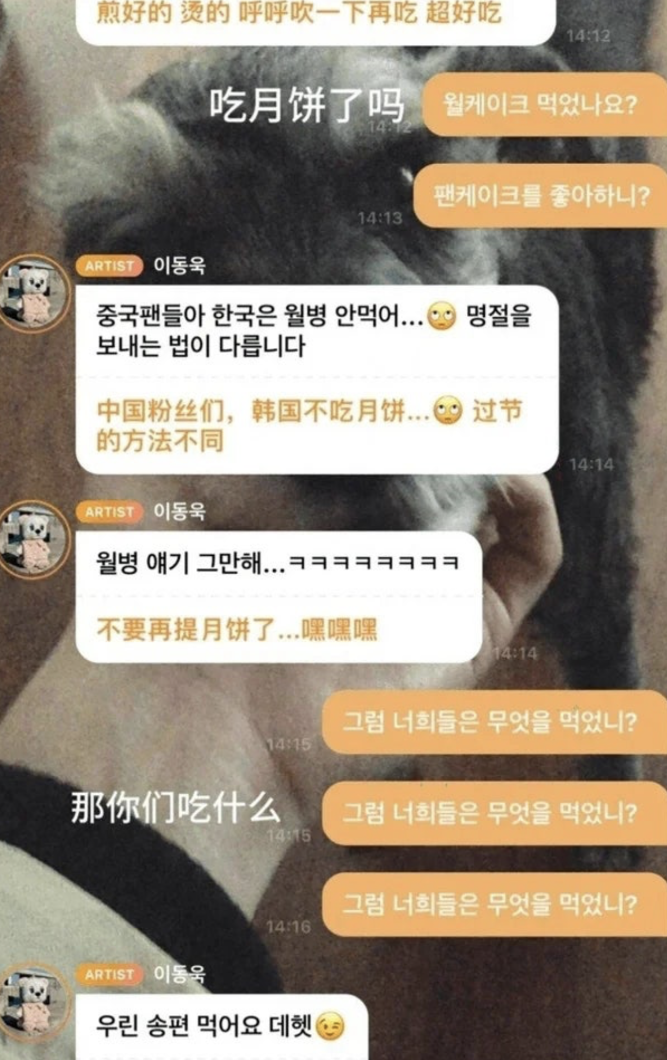- "중국 팬들아, 한국은 월병 안 먹는다. 명절을 보내는 법이 다르다."