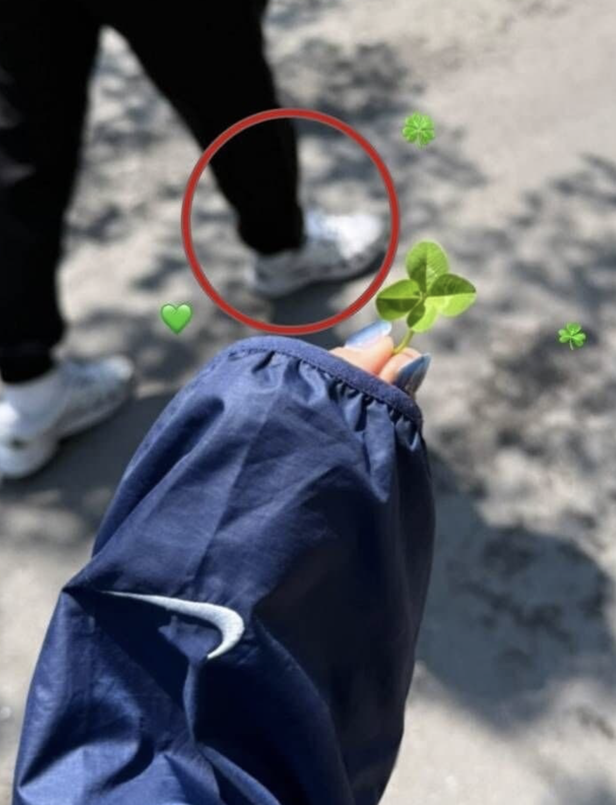 정숙은 같은 날 또 다른 스토리에서 네잎클로버 사진을 올렸는데, 그 앞에 한 남성이 주머니에 손을 넣고 서 있는 모습이 살짝 찍혔습니다.